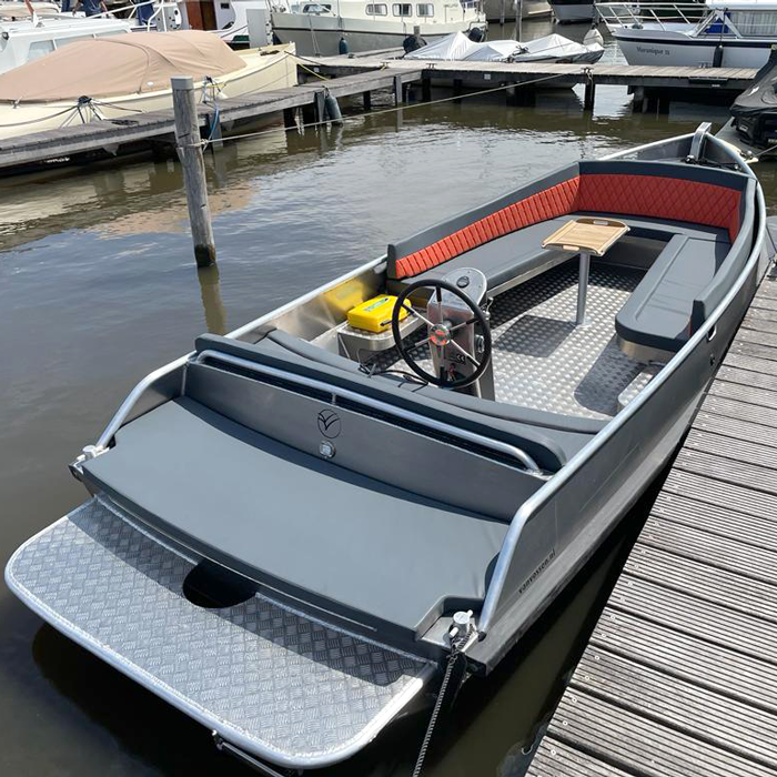 Voor onze vaarlessen gebruiken wij twee elektrisch aangedreven sloepen. Een Van vossen Sloep van 5,90 meter en een Saga 6,20 meter met een vaste schroef. De sloepen zijn speciaal gekozen voor onze vaarlessen vanwege de stabiele vaareigenschappen, robuuste bouw en fluisterstille elektrische aandrijving.